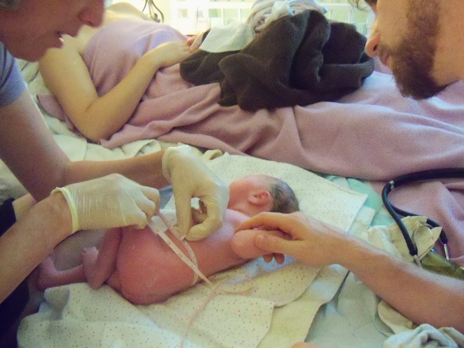 When I was about 37 weeks along, I was feeling the usual Braxton-Hicks contractions pretty often. Since my other births were like this, I knew that she would be coming soon. Around this time, the midwives came for a home visit to see what our apartment looked like and to talk about how the home birth would go down with Jesse and I. They also brought the birth tub, and encouraged us to set it up, fill it, and for me to get in it to see what it was like. They gave us a list of things that would be needed for the home birth, which I diligently set up on the dresser near to where the birth tub would be. Somewhere in this time, I woke up one morning feeling pretty intense contractions about 5 minutes apart. Justin came to pick up Owen and Nathan, and I called my mom to have her start heading over from CT. Unfortunately, by the time the midwives got to me, the labor had tapered off…false alarm. I was 3 cm dilated and not in active labor when they checked.